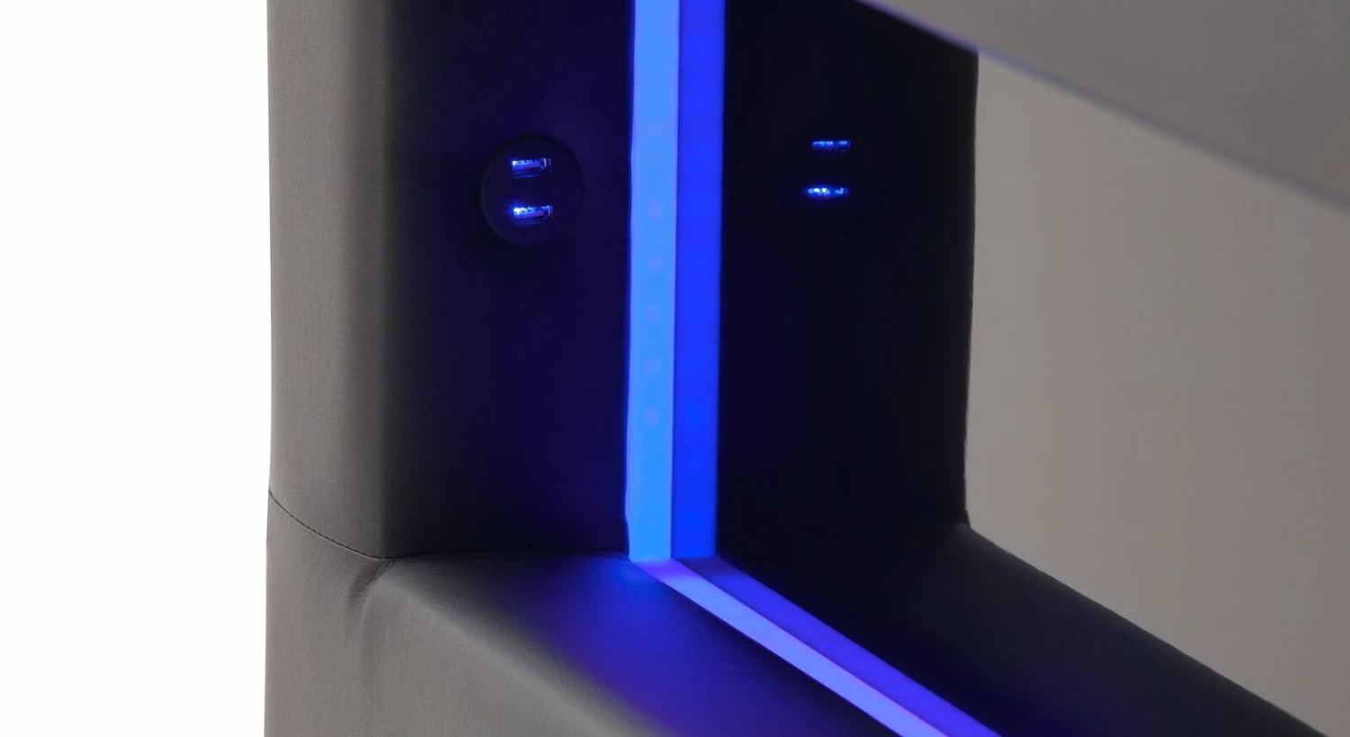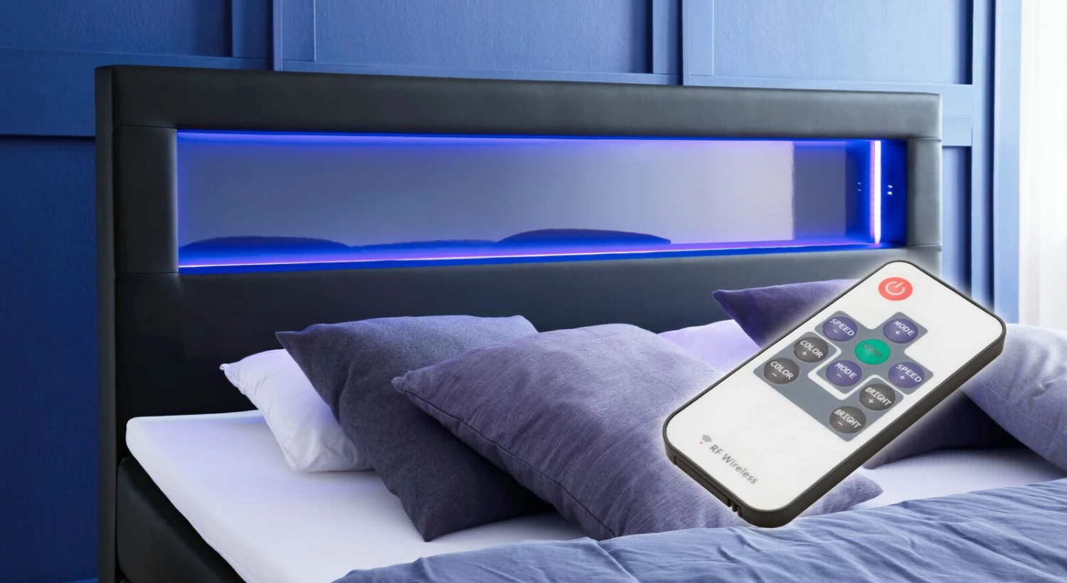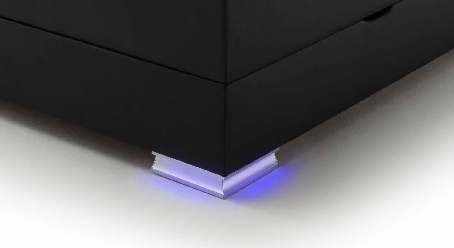 - Integrierte RGB-Beleuchtung in Kopfteil und Bettfüßen