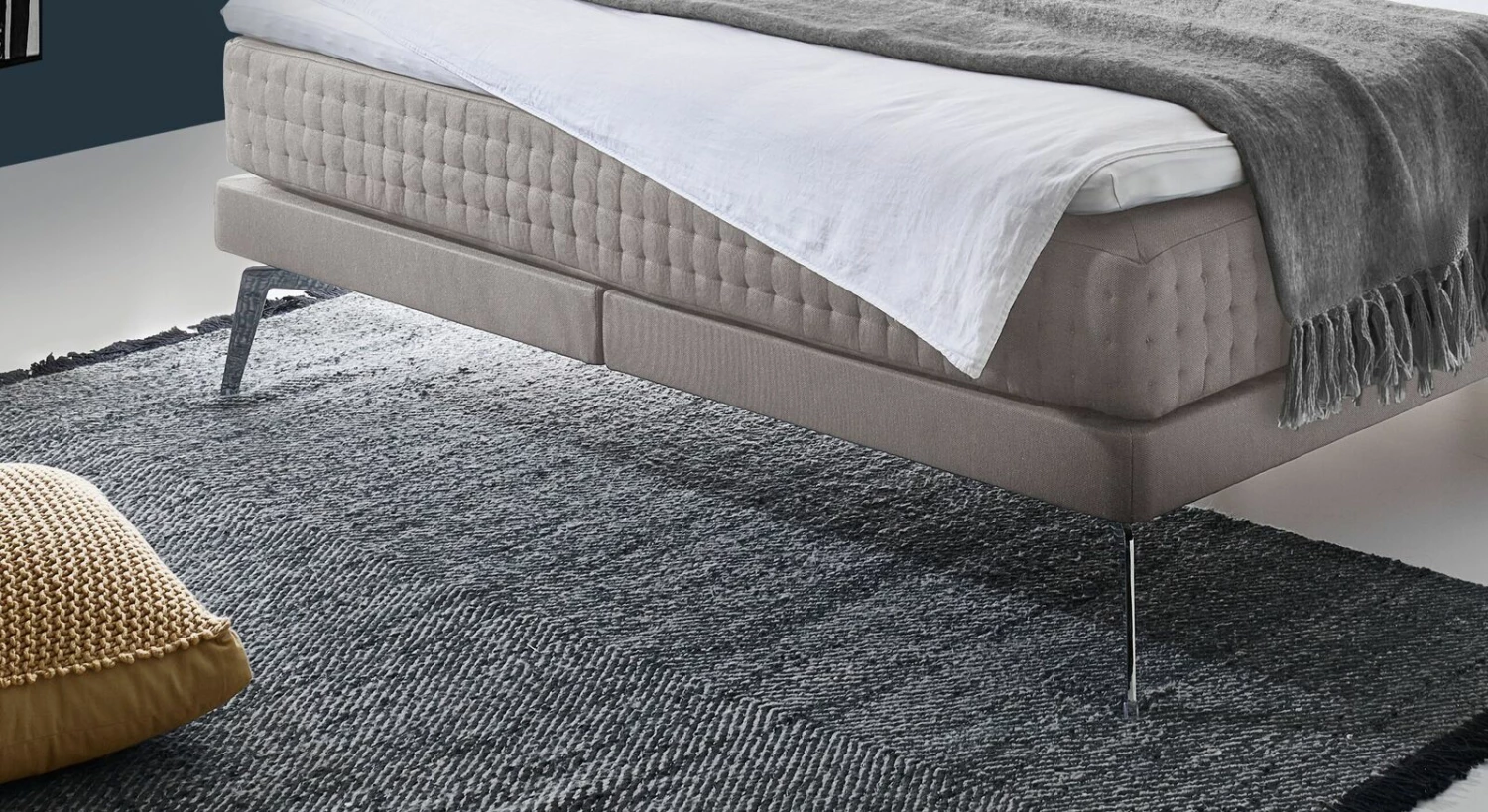 Neben den robusten Füßen bildet eine verhältnismäßig niedrige Tonnentaschenfederkern-Box den zweiten Teil der soliden Basis. Durch die geringe Höhe von 10 cm sorgt die Unterfederung für einen unverwechselbaren Polsterbett-Look inklusive Boxspring-Komfort.
