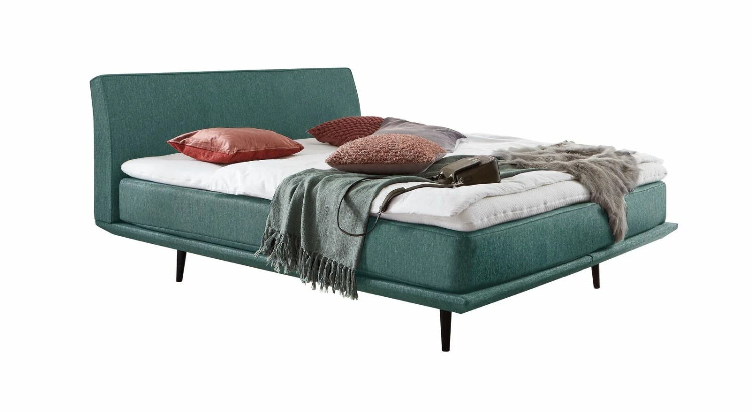 Die Füße sind leicht ausgestellt unter den Boxen angebracht und bestehen aus schwarz lackiertem Eichenholz. Den eleganten Webstoffbezug, der Boxen, Matratze und Kopfteil umhüllt, ist angenehm auf der Haut und in zahlreichen Farbvarianten lieferbar. So können Sie die Optik des Boxspringbettes „Erendor“ perfekt auf Ihren Einrichtungsstil abstimmen.