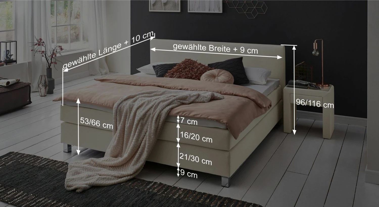 Sie sind auf der Suche nach einem Boxspringbett mit mittelweichem Liegekomfort, das in Ihre moderne Schlafzimmer-Einrichtung passt? Ihnen ist es wichtig, das Bettmodell individuell auf Ihre Bedürfnisse abzustimmen? Dann treffen Sie mit unserem Boxspringbett „Ferryland“ die richtige Wahl.