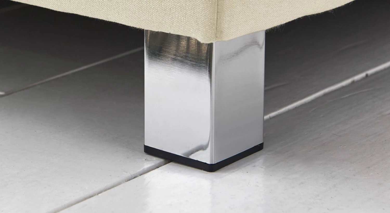 Das puristische Design wird zusätzlich durch die verchromten Blockfüße unterstrichen, die das Boxspringbett am Fußende zieren. Ab einer Breite von 140 cm erhalten Sie das Bett mit zwei Boxen in halber Breite, sodass sich auch vier Chromfüße im Lieferumfang befinden. Dank innenliegender Stützfüße bleibt es Ihnen überlassen, ob Sie nur die äußeren Ecken Ihres Doppelbettes mit den Füßen versehen oder alle vier Beine montieren.