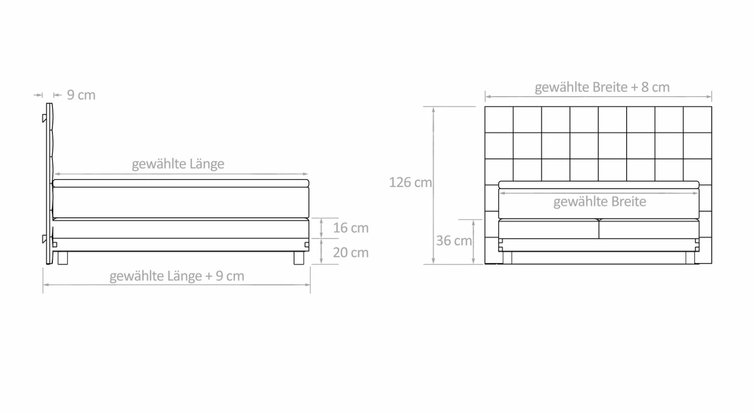 | Größe | 160/200cm, 180/200cm, 200/200cm, 160/210cm, 180/210cm, 200/210cm, 160/220cm, 180/220cm, 200/220cm |