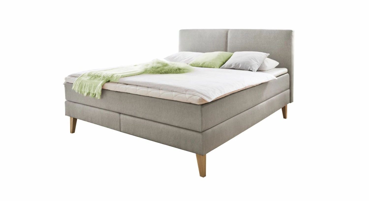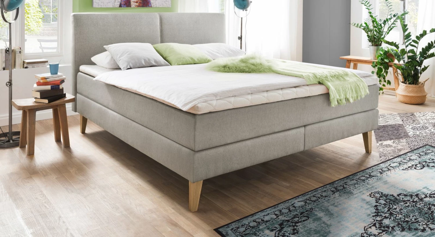 Passend zum aktuellen Hygge-Trend präsentieren wir Ihnen unser Boxspringbett „Jaramillo“. Die Schlafstätte begeistert mit einem Design, das bereits auf den ersten Blick das entspannte skandinavische Lebensgefühl vermittelt: ausgestellte Füße aus Massivholz, ein hohes zweiteiliges Polster-Kopfteil und ein geschmackvoller Webstoffbezug – charakteristisch dezent und zu einem stimmigen Gesamtkonzept zusammengefügt.