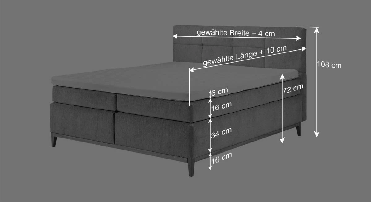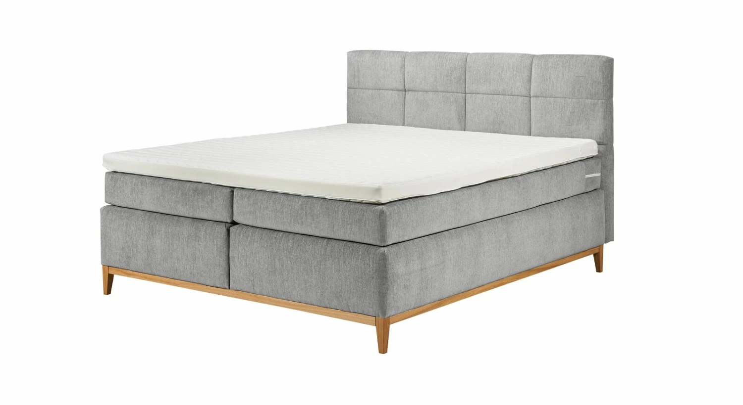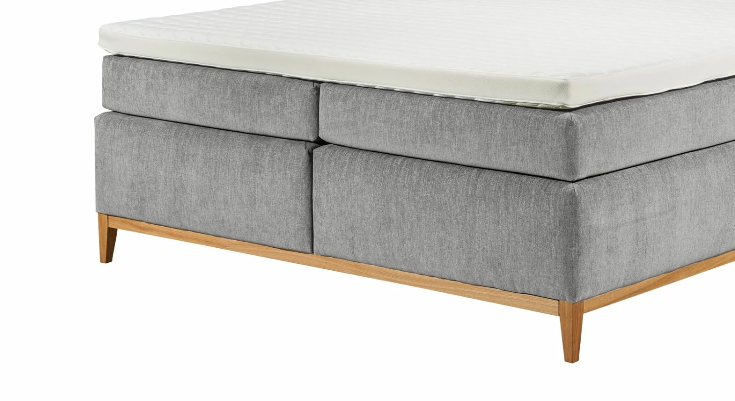 Wie für skandinavische Boxspringbetten üblich, besteht dieses Modell aus Boxen mit stützendem Federkern, zwei 7-Zonen-Tonnen-Taschenfederkern-Matratzen und einem durchgehenden Topper. Insbesondere die mittelfeste Matratze, die bis 120 kg belastbar ist, passt sich ergonomisch Ihren Körperkonturen an und sorgt dadurch für ein optimales Liegeergebnis und einen erholsamen Schlaf.