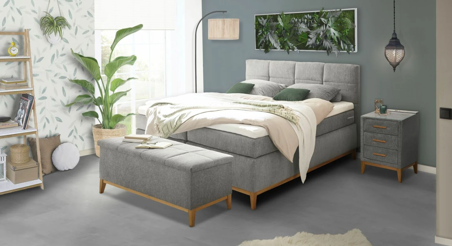 Das Boxspringbett „Jared“ begeistert mit einem eleganten, heimeligen Skandi Style. Der hohe Bettaufbau steht dabei für luxuriösen Komfort und die Kombination aus grauem Webstoff mit warmem Massivholz sorgt für die nordische Behaglichkeit. Neben der Optik weiß das Bett aber auch mit inneren Werten mehr als nur zu überzeugen. Denn der charakteristische Boxspringaufbau mit Federkernbox, Tonnen-Taschenfederkern-Matratze und Kaltschaum-Topper beschert Ihnen Nacht für Nacht ein wohliges Liegegefühl für erholsamen Schlaf.