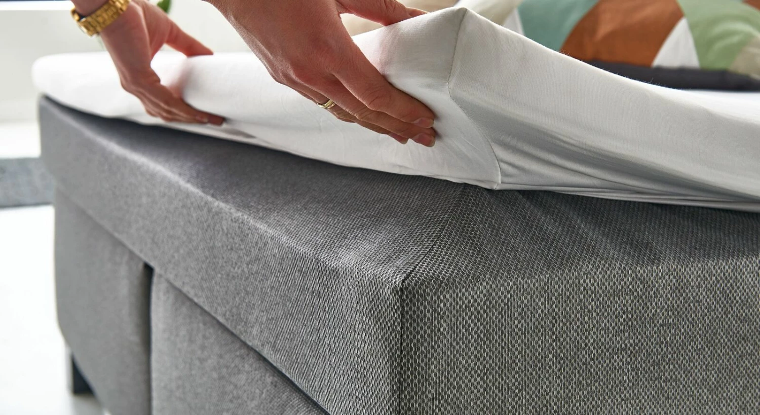 Der 4 cm hohe Topper ist fest mit der Matratze verbunden und kann daher nicht verrutschen. Bezogen ist er mit einem angenehmen Microfaserstoff, der auf der Liegeseite mit einem Reißverschluss versehen ist. So kann er teilweise abgenommen und gewaschen werden.