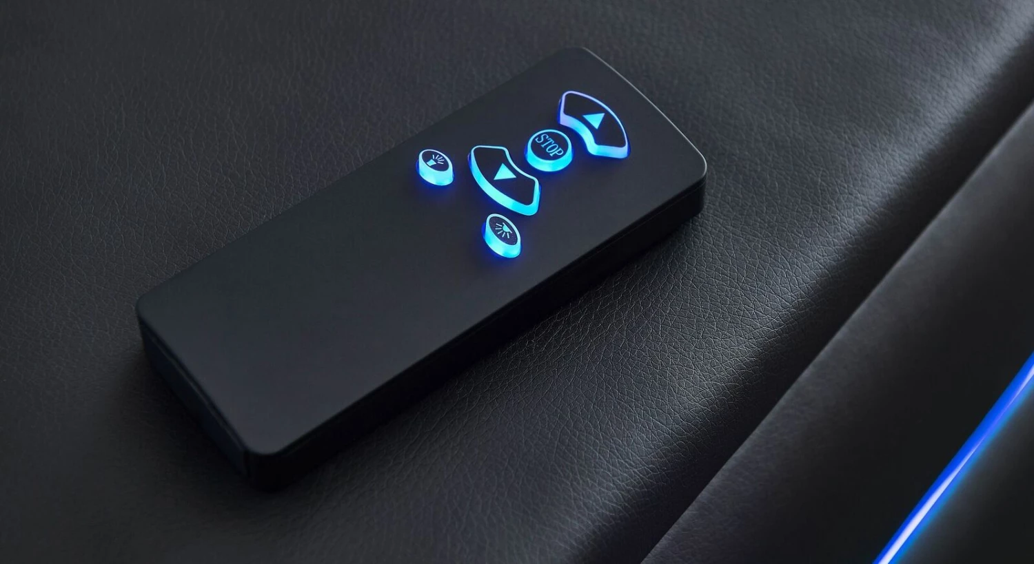 Damit Sie mit Popcorn und Chips versorgt Ihren Lieblingsfilm anschauen können, drücken Sie einfach auf die Taste der mitgelieferten Fernbedienung. Schon öffnet sich der Kasten und Ihr TV fährt nach oben. Genauso einfach verschwindet der Fernseher auf Knopfdruck wieder in der Box, wenn Sie schlafen möchten.
