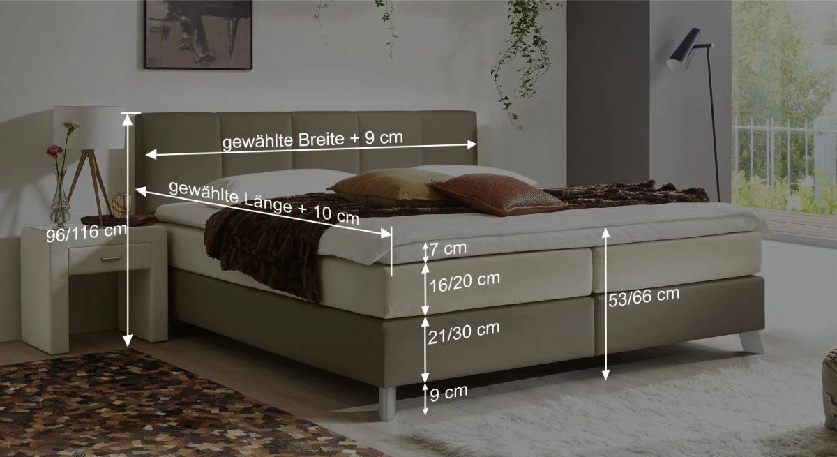 Bevorzugen Sie das typisch federnde Liegegefühl eines Boxspringbettes, eignet sich die Tonnen-Taschenfederkern-Matratze. Die Matratze mit Kaltschaum bietet Ihnen ein etwas gedämpftes Liegeempfinden, vergleichbar mit dem von Matratze und Lattenrost in einem Bettgestell.