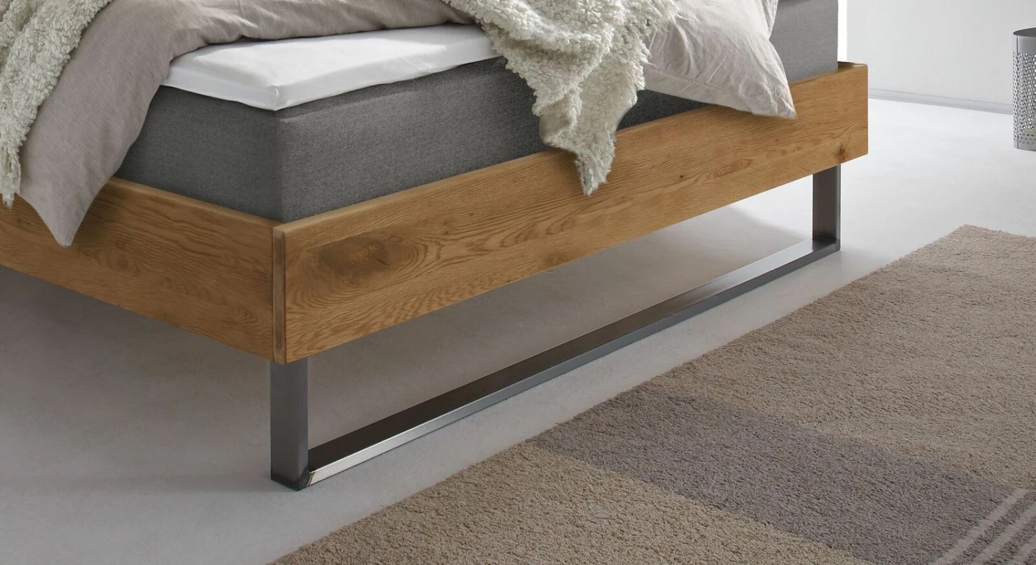 Dank der variablen Montagehöhe der Stahlkufen am Bettrahmen können Sie die Optik Ihres Bettes nochmals individuell anpassen: Sie bestimmen, wie viel Freiraum unterhalb der Liegefläche des Bettes „Olanda“ vorhanden ist.
