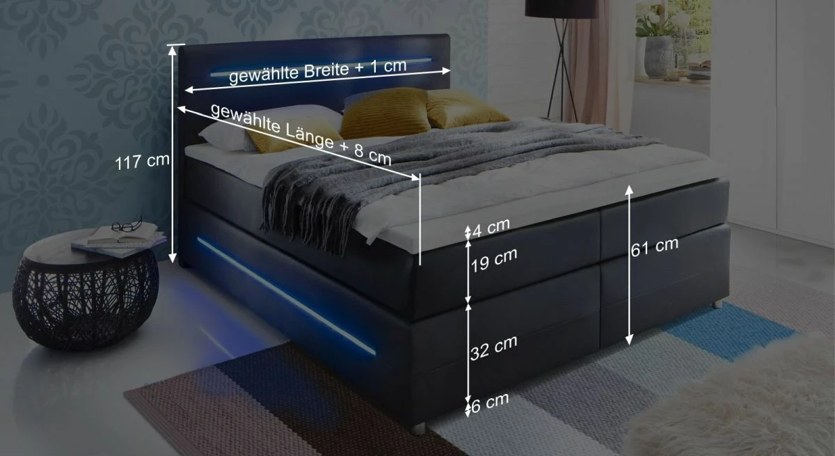 - LED-Beleuchtung seitlich und im Kopfteil