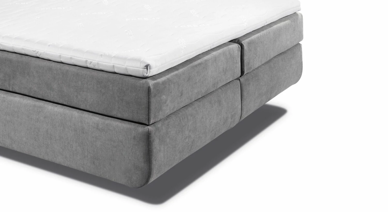 Im Gegensatz zu Box und Matratze, die beide zweigeteilt sind, ist der darauf liegende Topper durchgehend. Der Komfortschaum-Topper ist mit einem abnehmbaren Bezug versehen, den Sie dank des Reißverschlusses einfach entfernen und bei 40 °C in der Maschine waschen können.