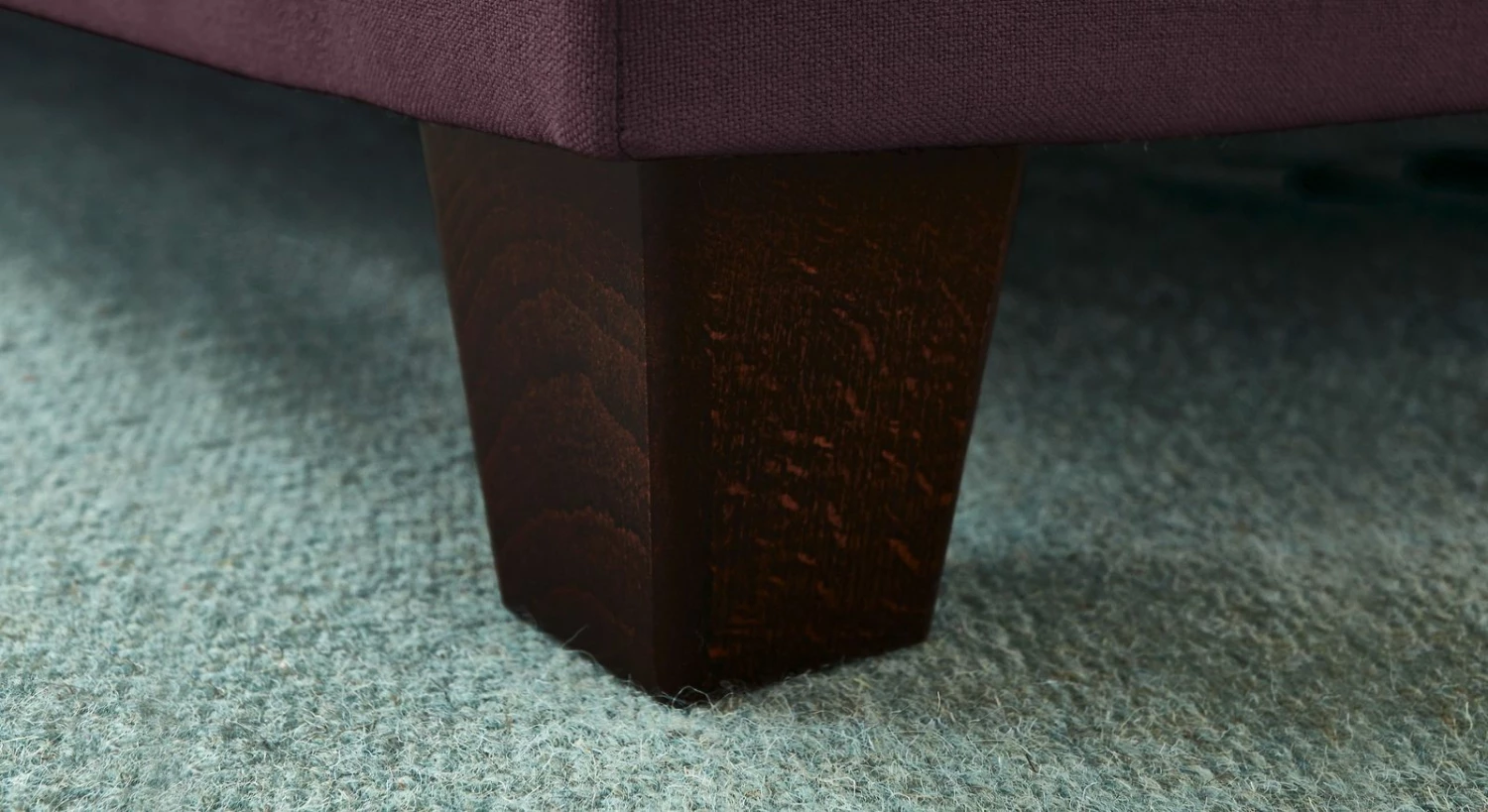 - Tief geheftetes Polster-Kopfteil und wengefarbene Holzfüße
