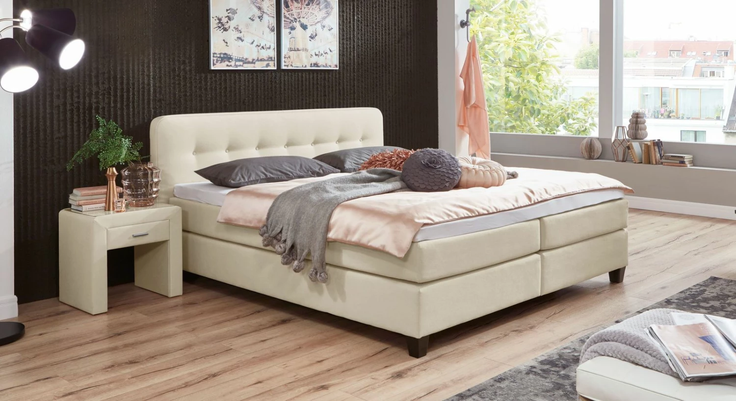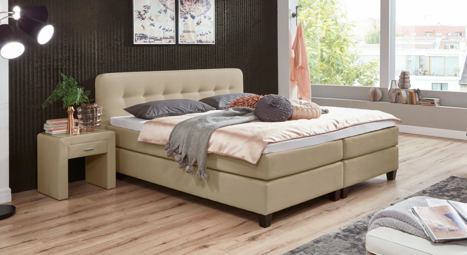 Komfortables Boxspringbett „Westport“ mit Stoffbezug