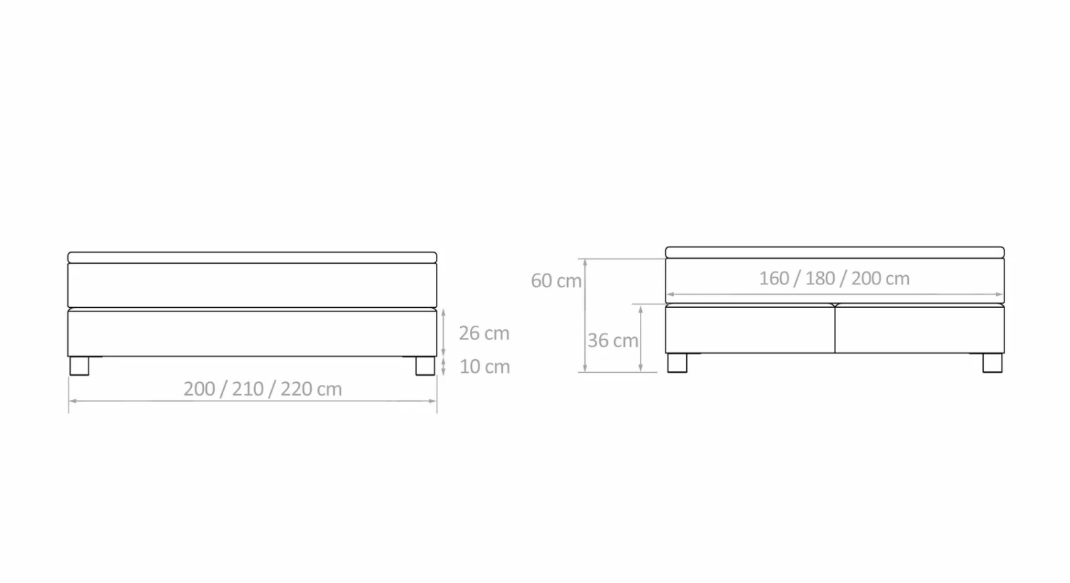 | Größe | 160/200cm, 180/200cm, 200/200cm, 160/210cm, 180/210cm, 200/210cm, 160/220cm, 180/220cm, 200/220cm |