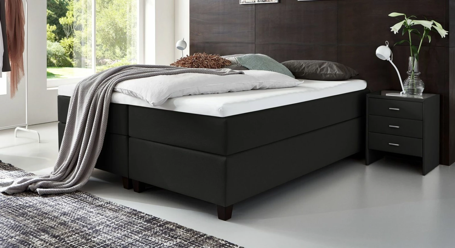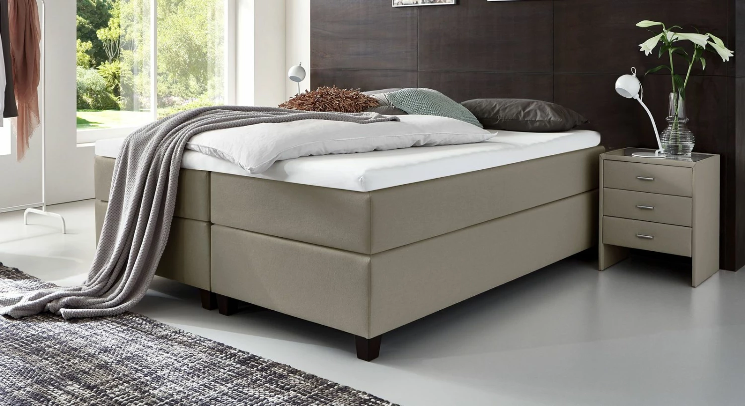 Einladende Boxspringliege „Luciano“ mit stilvollen Holzfüßen