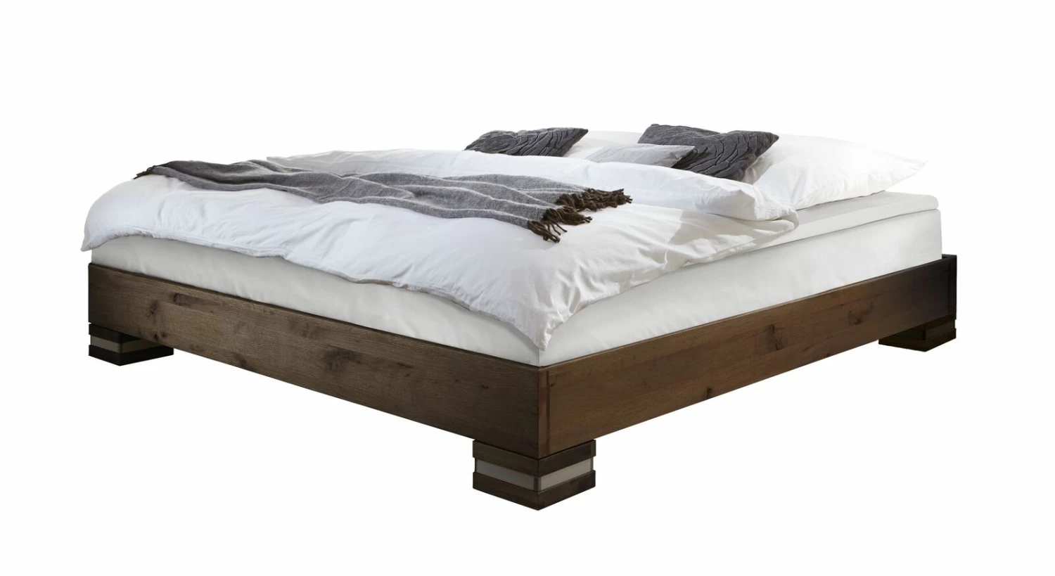 Das Wildeichenbett „Mexiana“ ist mit dem sogenannten Kingston-System bereits komplett bestückt. Dieses besteht aus einer 7-Zonen-TTF-Box (zwei Boxen ab 160 cm Breite), einer der drei wählbaren TTF-Matratzen sowie einem Komfortschaum-Topper, der bei Bedarf gegen Aufpreis durch andere Topper-Varianten ausgetauscht werden kann.