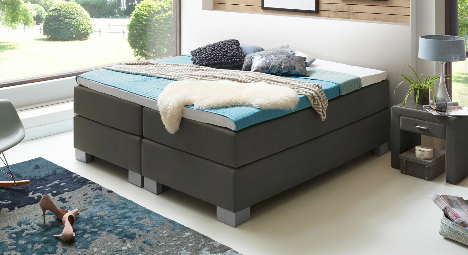 Wenn Sie das Bedürfnis haben, sich an ein gepolstertes Betthaupt anzulehnen, können wir Ihnen alternativ auch das Boxspringbett „Puebla“ im gleichen Design, jedoch mit Kopfteil anbieten.