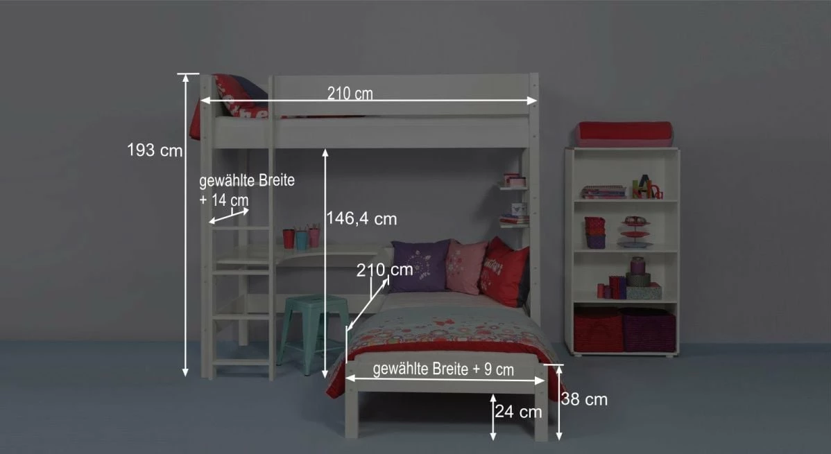 | Liegefläche oben | 090/200 cm, 120/200 cm, 140/200 cm |