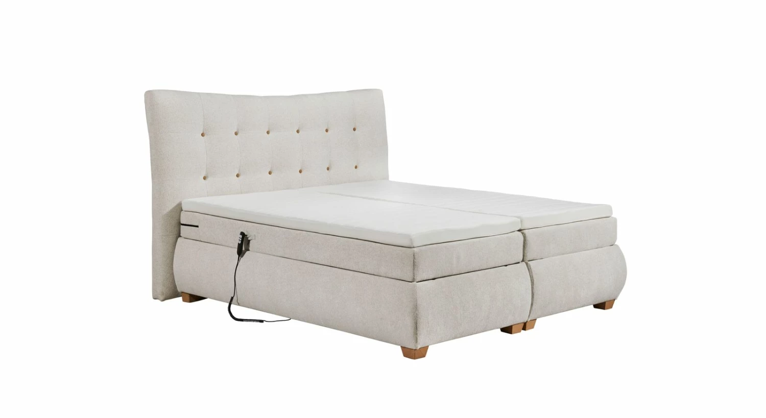 Elektro-Boxspringbett „Randy“ im Modern Style mit geschwungenem Kopfteil und Bombierung
