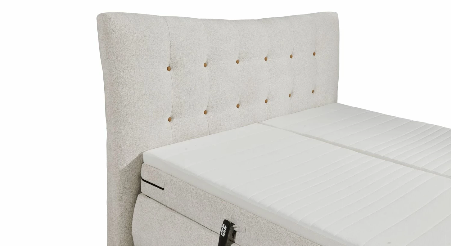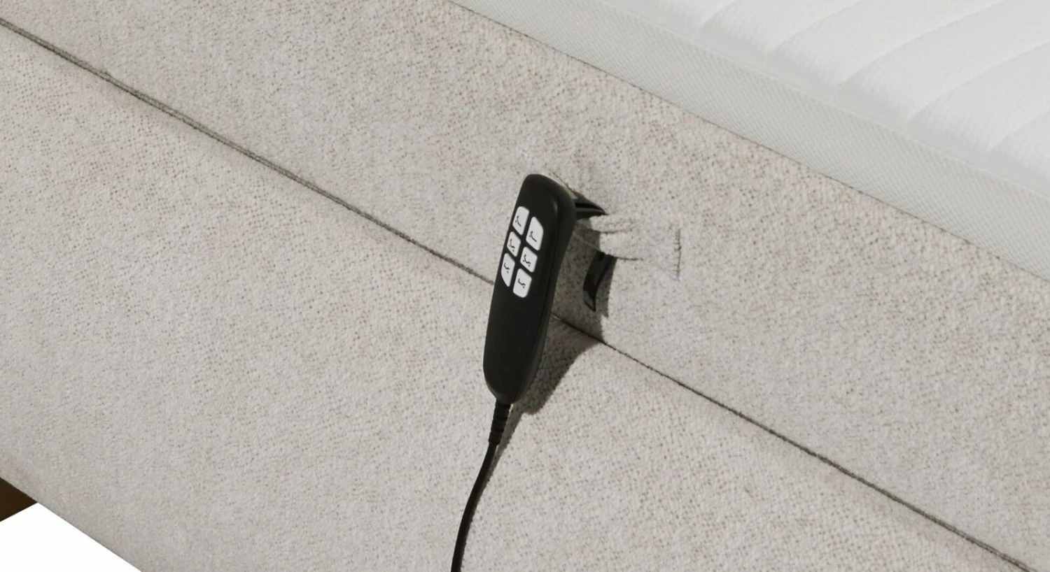 Das Highlight des Boxspringbettes „Randy“ ist die elektrische Verstellung. Diese ist in den bombierten Bettrahmen integriert und hebt bzw. senkt Oberkörper- und Fußbereich auf Knopfdruck. Der Clou: Jede Bettseite lässt sich individuell verstellen, damit Sie und Ihr Partner in der Wunschposition schlummern und relaxen können. Benötigen Sie die kabelgebundene Fernbedienung gerade nicht, können Sie sie einfach in die seitliche Lasche am Matratzenbezug einhängen.