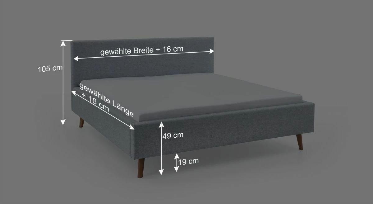 Breite + 16 cm - Kopfteilhöhe: 105 cm