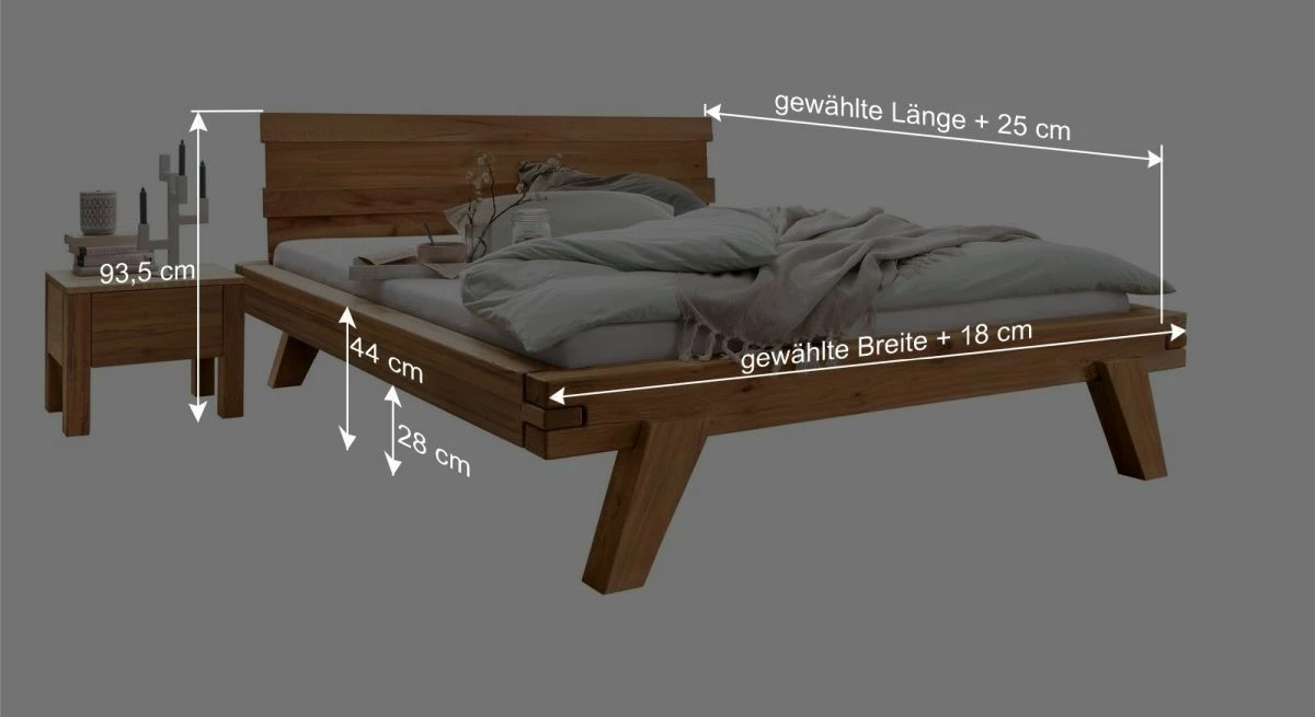 Breite + 18 cm - Kopfteilhöhe: 93,5 cm