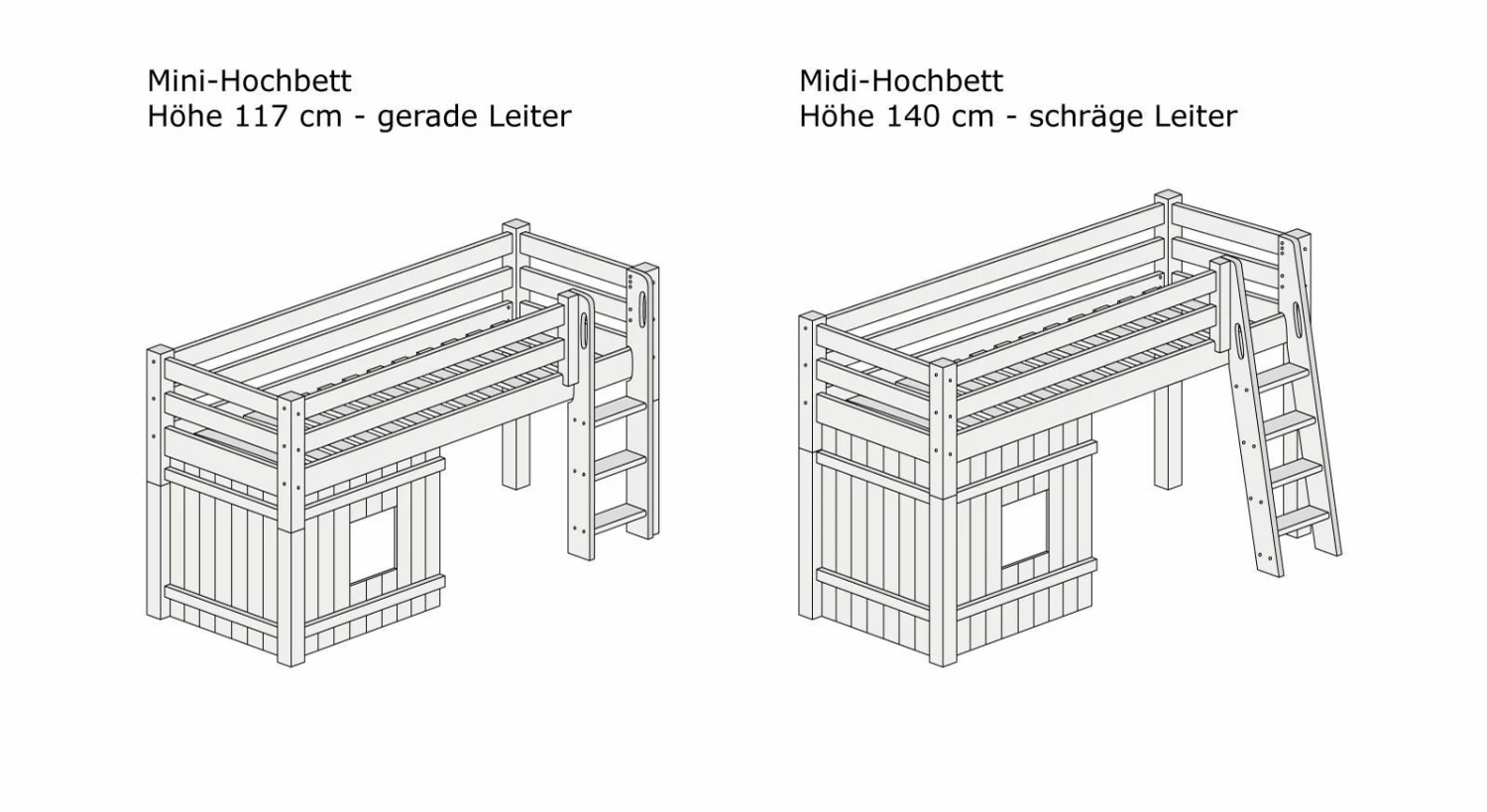 | Variante | Bett mit 117cm Höhe – gerade Leiter, Bett mit 117cm Höhe – schräge Leiter, Bett mit 140cm Höhe – gerade Leiter, Bett mit 140cm Höhe – schräge Leiter |