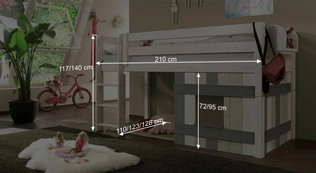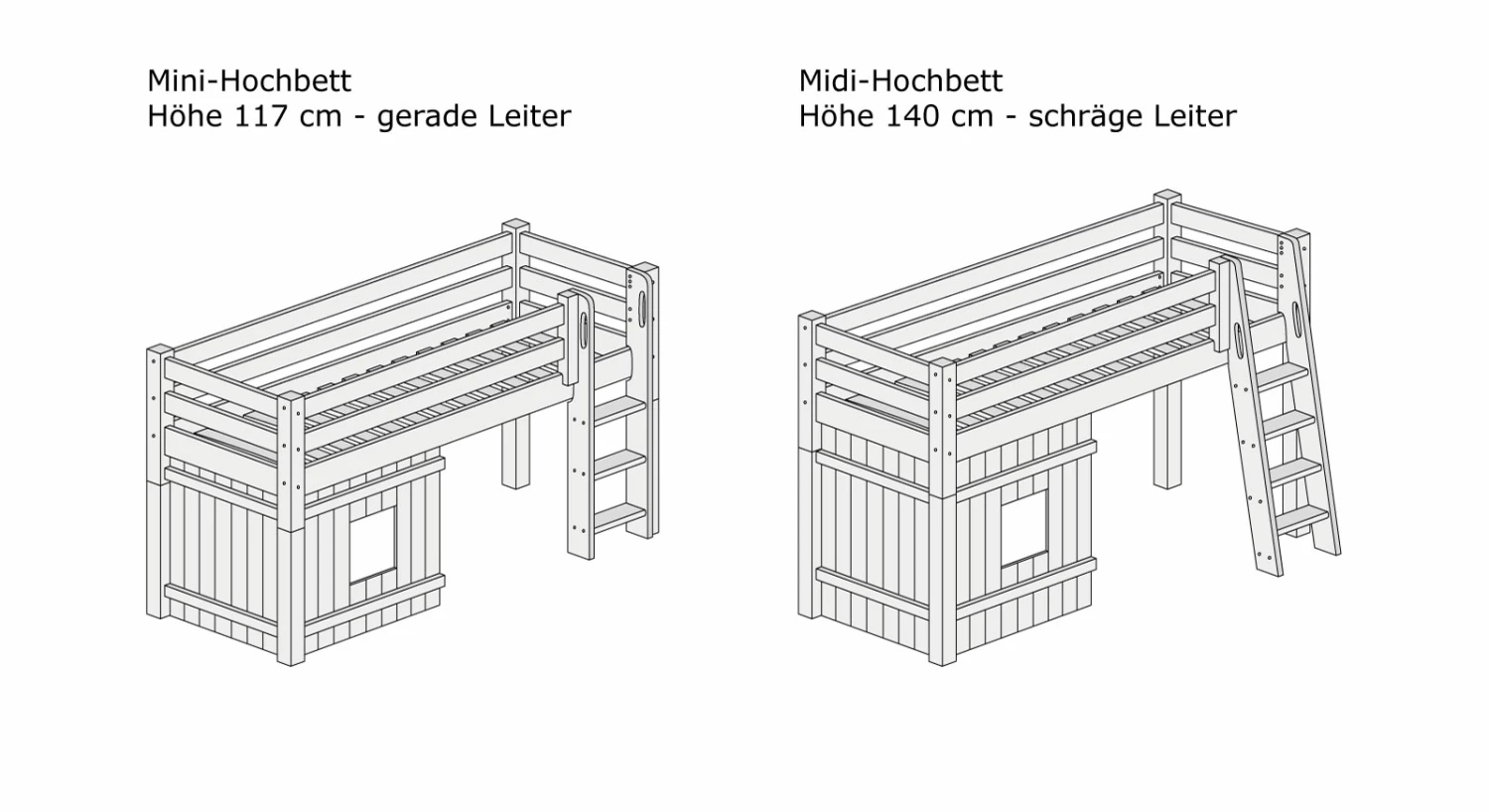 | Variante | Bett mit 117cm Höhe – gerade Leiter, Bett mit 117cm Höhe – schräge Leiter, Bett mit 140cm Höhe – gerade Leiter, Bett mit 140cm Höhe – schräge Leiter |