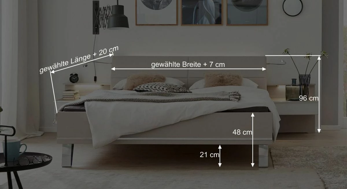 Breite + 7 cm - Kopfteilhöhe: 96 cm