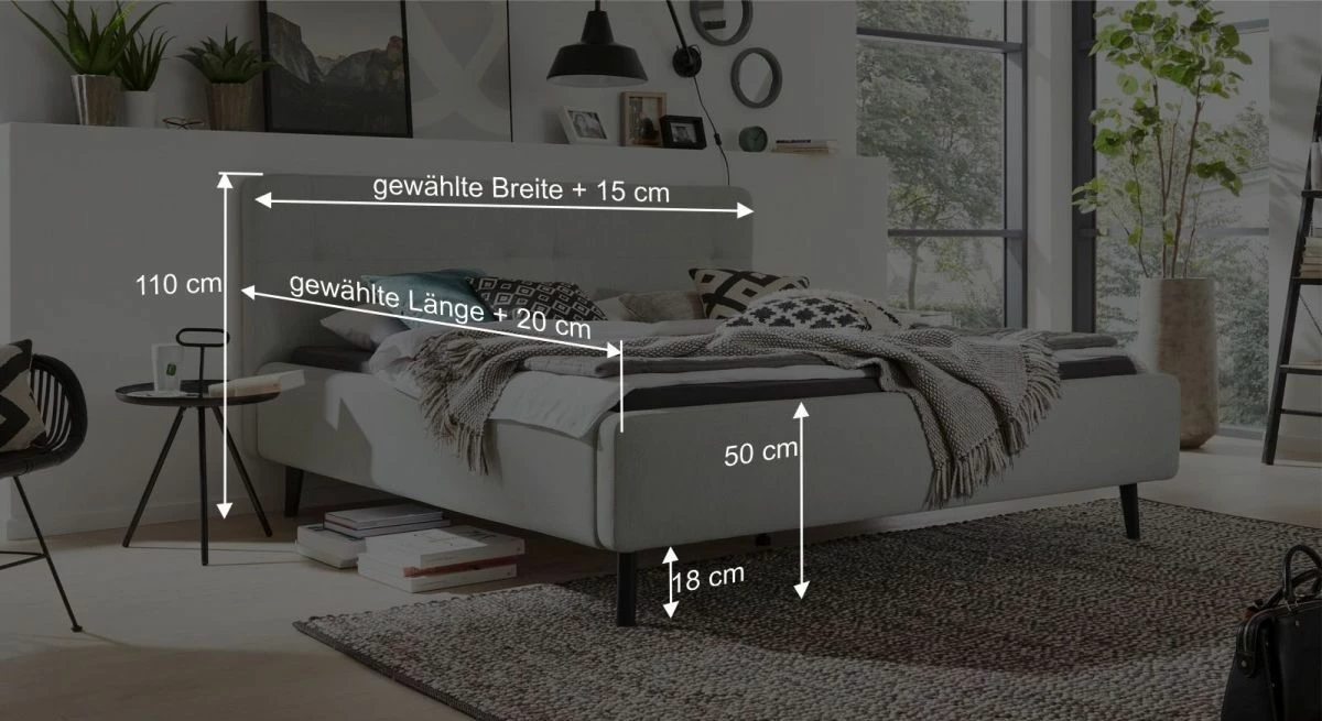 Breite + 15 cm - Kopfteilhöhe: 110 cm