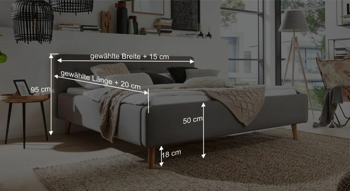 Breite + 15 cm - Kopfteilhöhe: 95 cm