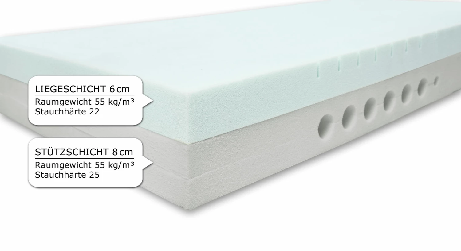 Diese oberste Liegeschicht beeinflusst maßgeblich das generelle Festigkeitsempfinden der Matratze, denn der Körper kommt mit diesem Teil fast unmittelbar in Berührung. Je weicher und/oder profilierter die Matratzenoberfläche ist, desto stärker sinkt der Körper ein.