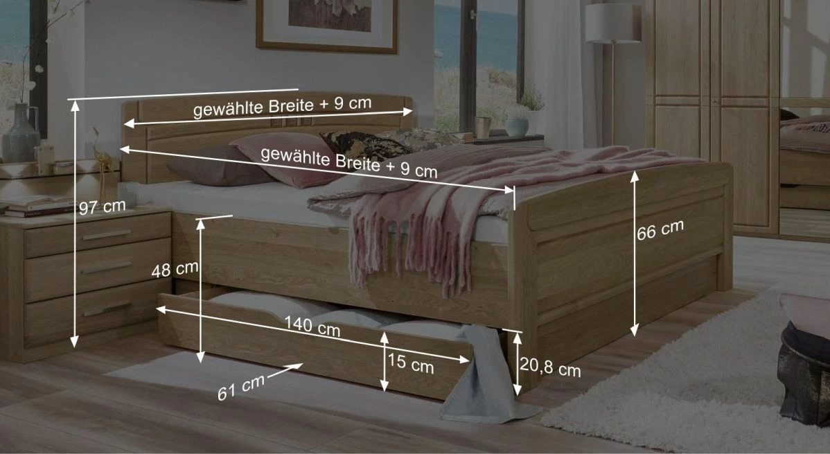 Breite + 9 cm - Kopfteilhöhe: 97 cm