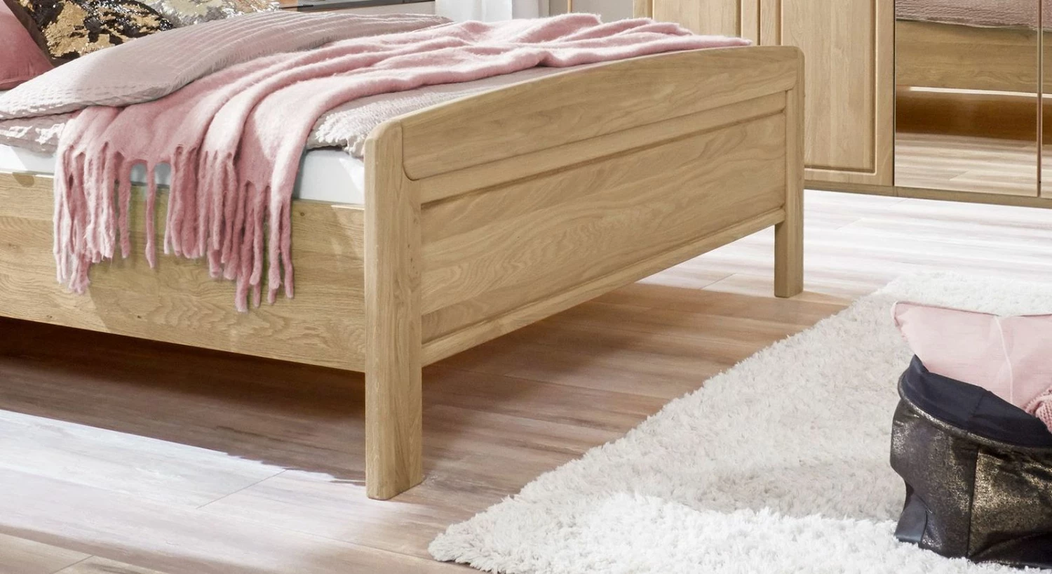 - Charmante Zierfräsungen am Kopfteil