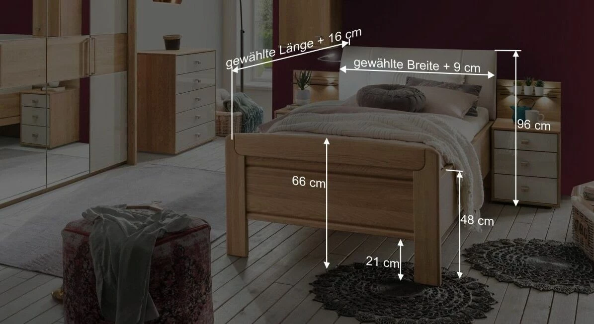 Breite + 9 cm - Kopfteilhöhe: 96 cm