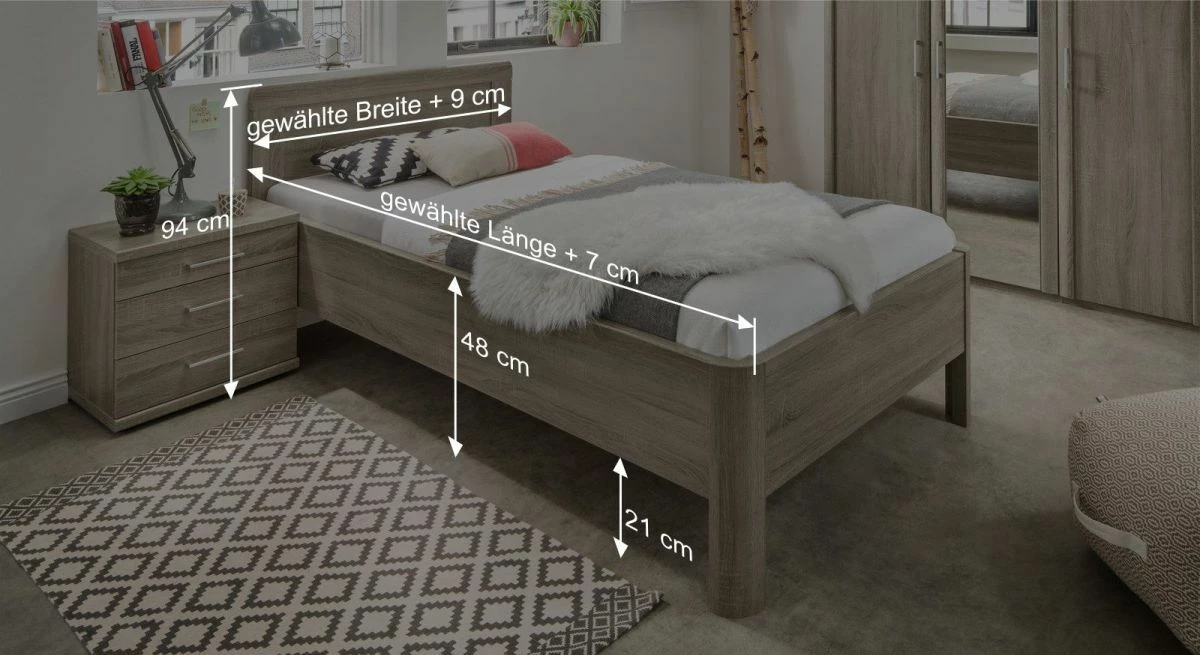 Breite + 9 cm - Kopfteilhöhe: 94 cm
