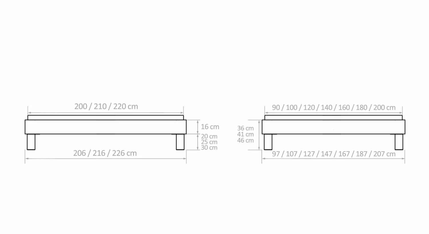 Breite + 7 cm - Bettrahmenhöhe: 36 cm, 41 cm, 46 cm