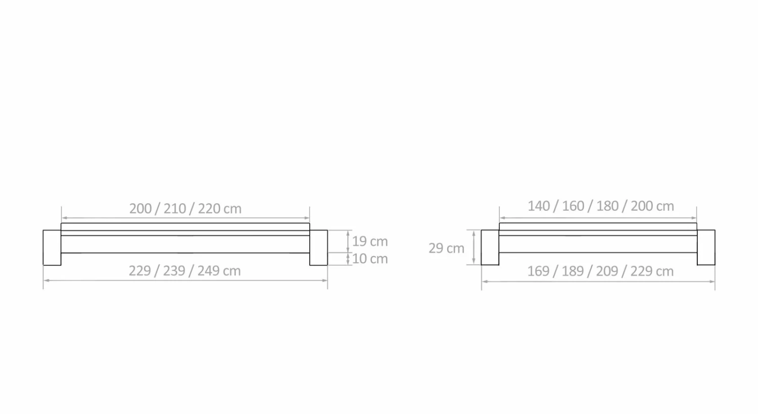 Breite + 29 cm - Bettrahmenhöhe: 29 cm