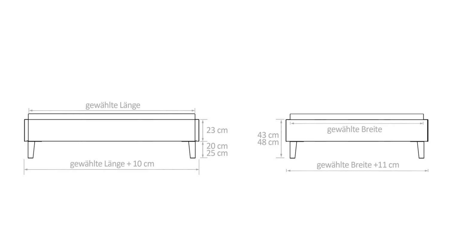 Breite + 11 cm - Bettrahmenhöhe: 43 cm, 48 cm