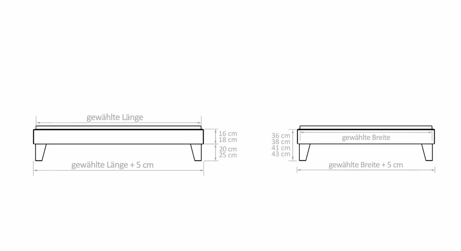 Breite + 5 cm - Bettrahmenhöhe: 36 cm, 38 cm, 41 cm, 43 cm