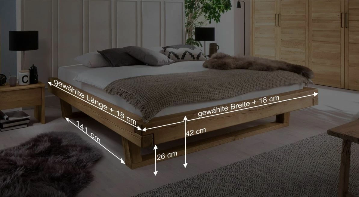 Breite + 18 cm - Bettrahmenhöhe: 42 cm