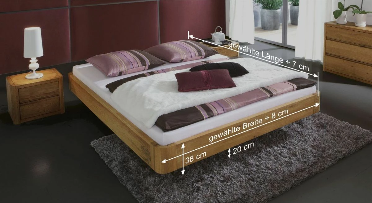 Breite + 8 cm - Bettrahmenhöhe: 38 cm