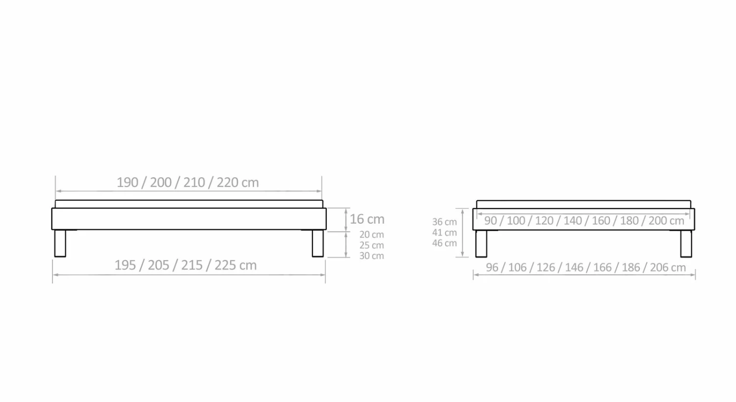 Breite + 6 cm - Bettrahmenhöhe: 36 cm, 41 cm, 46 cm