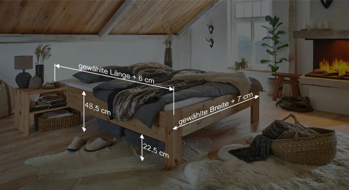 Breite + 7 cm - Bettrahmenhöhe: 48,5 cm