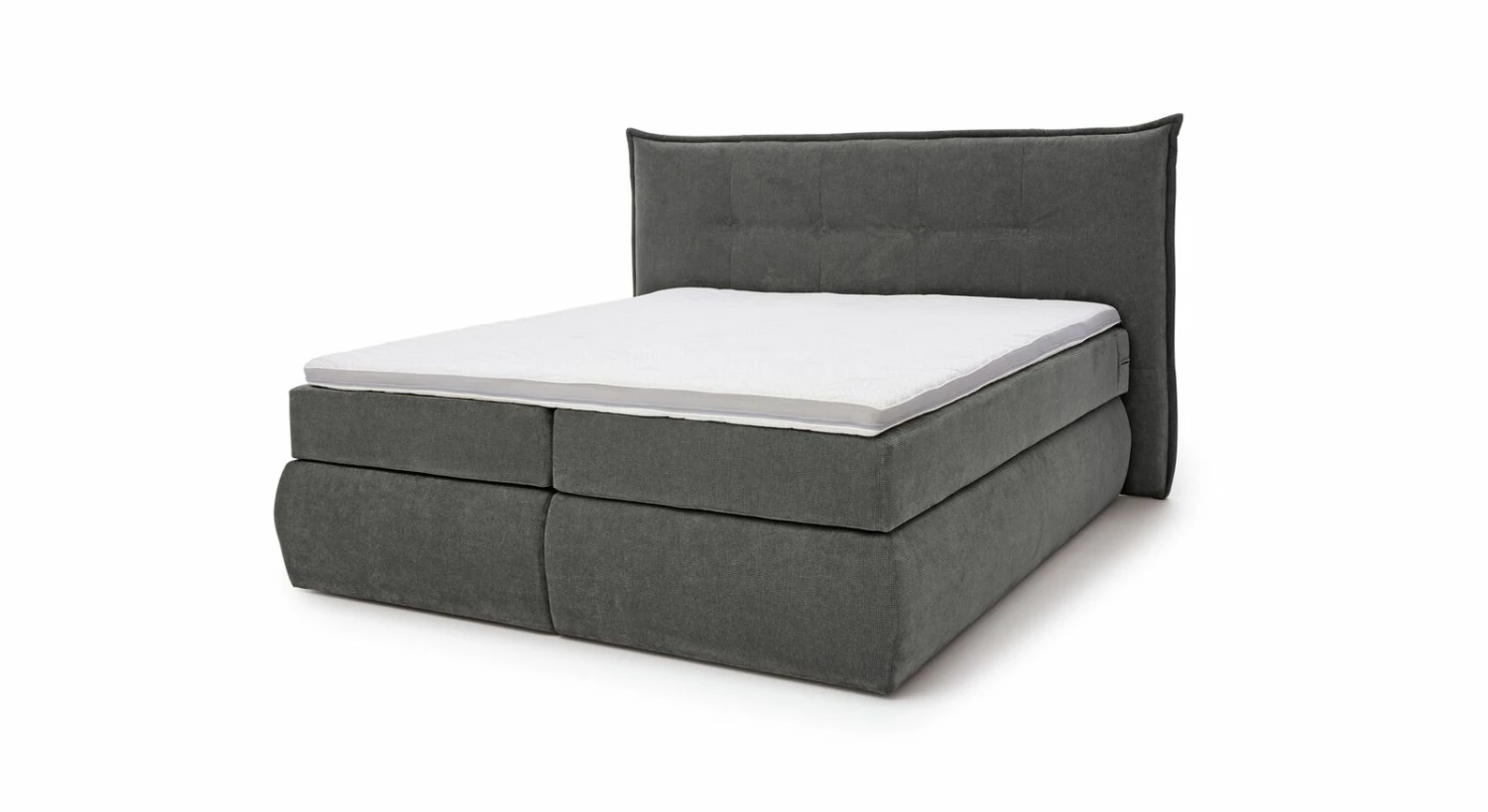 Den unteren Bestandteil des Systems bildet die Box: Diese beinhaltet entweder einen Bonell-Federkern (vorrangig für Rücken- und Bauchschläfer) oder einen hochwertigen 7-Zonen-Tonnen-Taschenfedern, der sich durch eine sehr gute Anpassungsfähigkeit auszeichnet. Die Box bildet das Fundament, auf dem eine von Ihnen auswählbare Matratze samt ergänzendem Topper liegt. Der Topper (auch Top-Matratze genannt) sorgt für die Feinabstimmung des Liegegefühls und ist daher in der Lage, gewünschte Eigenschaften der gewählten Matratze noch weiter zu betonen. Hier finden Sie eine praktische Übersicht zu den möglichen Zusammenstellungen Ihres neuen Boxspringbettes.