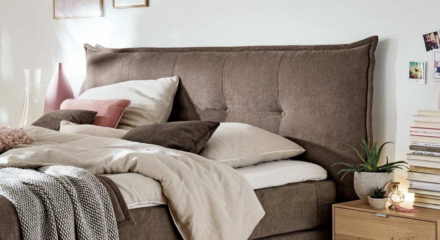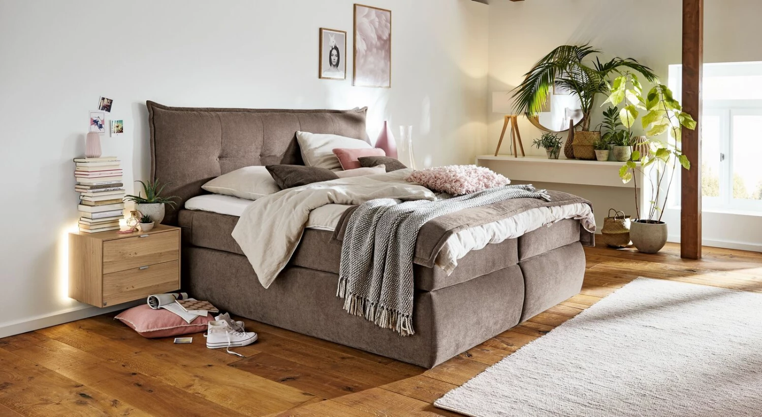 Im modern interpretierten Landhausstil präsentiert sich das charmante MUSTERRING Bettkasten-Boxspringbett „Felina-Case“. Gemütlich gepolsterte Elemente treffen hier auf angenehme Stoffbezüge und verbindet sich so zu einer luxuriösen Schlafstätte, die jedes gehobene Interieur weiter aufzuwerten vermag.