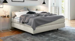 Die Basis des geschmackvollen Boxspringbettes bildet die stabile Box mit Tonnentaschenfederkern im Inneren. Die Box hat eine stützende Funktion und sorgt gleichzeitig für das leicht federnde Liegegefühl, das charakteristisch für ein Boxspringbett ist. Das MUSTERRING Boxspringbett „Elias“ wird inklusive einer mittelweichen Matratze, lieferbar in drei Varianten und einem passenden Kaltschaumtopper geliefert.