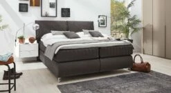 Edles Design, gehüllt in ein attraktives Gewand in Lederoptik – das MUSTERRING Boxspringbett „Felina-Basic“ Bombierung stiehlt jedem anderen Möbelstück Ihres Schlafzimmers eindeutig die Show und ist der absolute Hingucker in Ihren Räumlichkeiten.