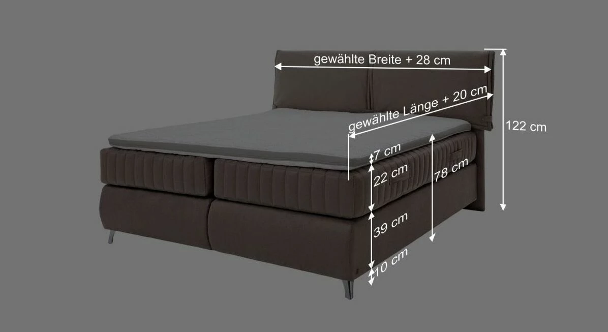 Perfekt abgerundet wird das MUSTERRING Boxspringbett „Felina-Basic“ Bombierung mit dem richtigen Topper. Bei unruhigem Schlaf und/oder vermehrtem nächtlichem Schwitzen eignet sich der bereits im Preis enthaltene 7-Zonen-Topper aus Kaltschaum.
