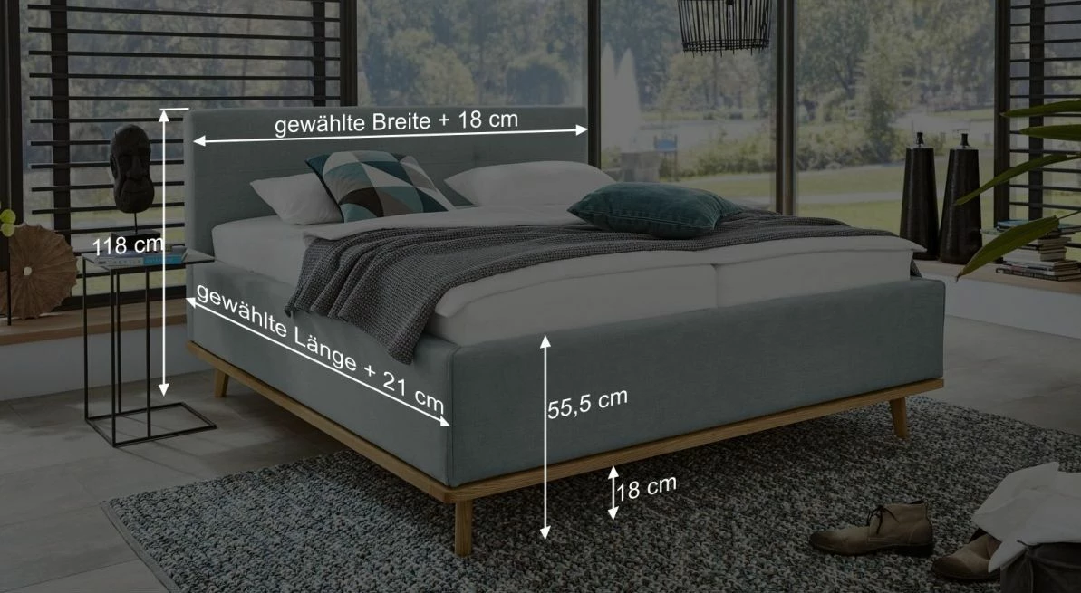 Breite + 18 cm - Kopfteilhöhe: 118 cm